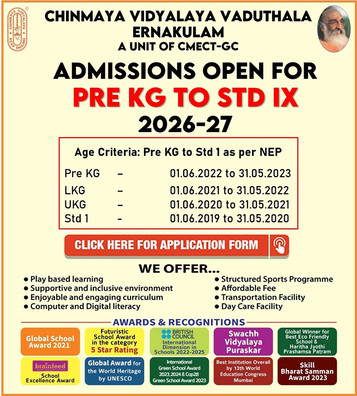 I am proud to be part of this Chinmaya family. Our Principal, teachers and other faculties of our school have always been loving and encouraging. Our school has always focused on a multi faceted development of the students, helping them to excel in the various fields they choose. Words are not enough to express my gratitude towards our school for moulding me into an individual with morals and values respected by the society.