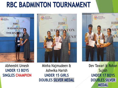 In the Badminton Tournament organised at RBC Tripunithura, Abheesht Umesh emerged as Singles Champion – U 13 Boys. Our students bagged Silver in both Girls U 15 Doubles and Boys U 17 Doubles respectively.