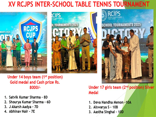 Our school team bagged Gold medal in U 14 Boys category and Silver medal in U 17 Girls category in the XV RCJPS Inter school Table Tennis Tournament.
